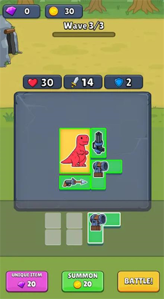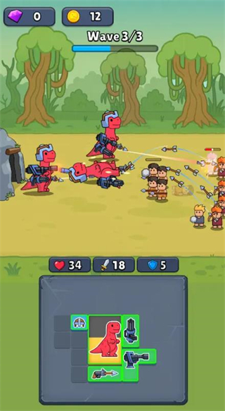 2、可自由布置恐龙站位,利用地形阻挡敌人,并实时调整肉盾型三角龙前排阵型。